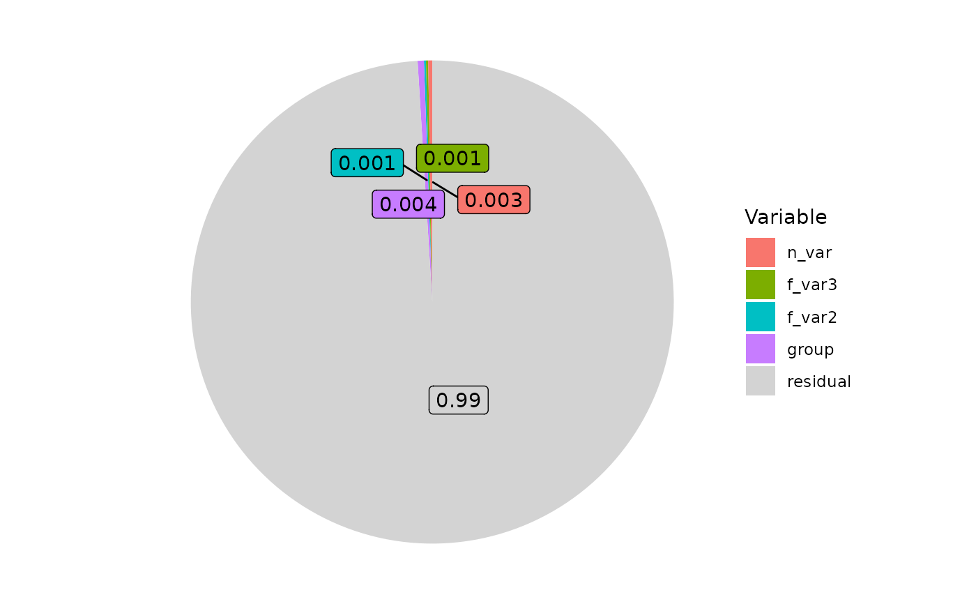 plot_R2(brmsfit, Colors = NULL, PlotType = "pizza", Label = NULL, Break = NULL)The output of a brms model. You can use VarDecomp::brms_model() to produce a brmsfit.